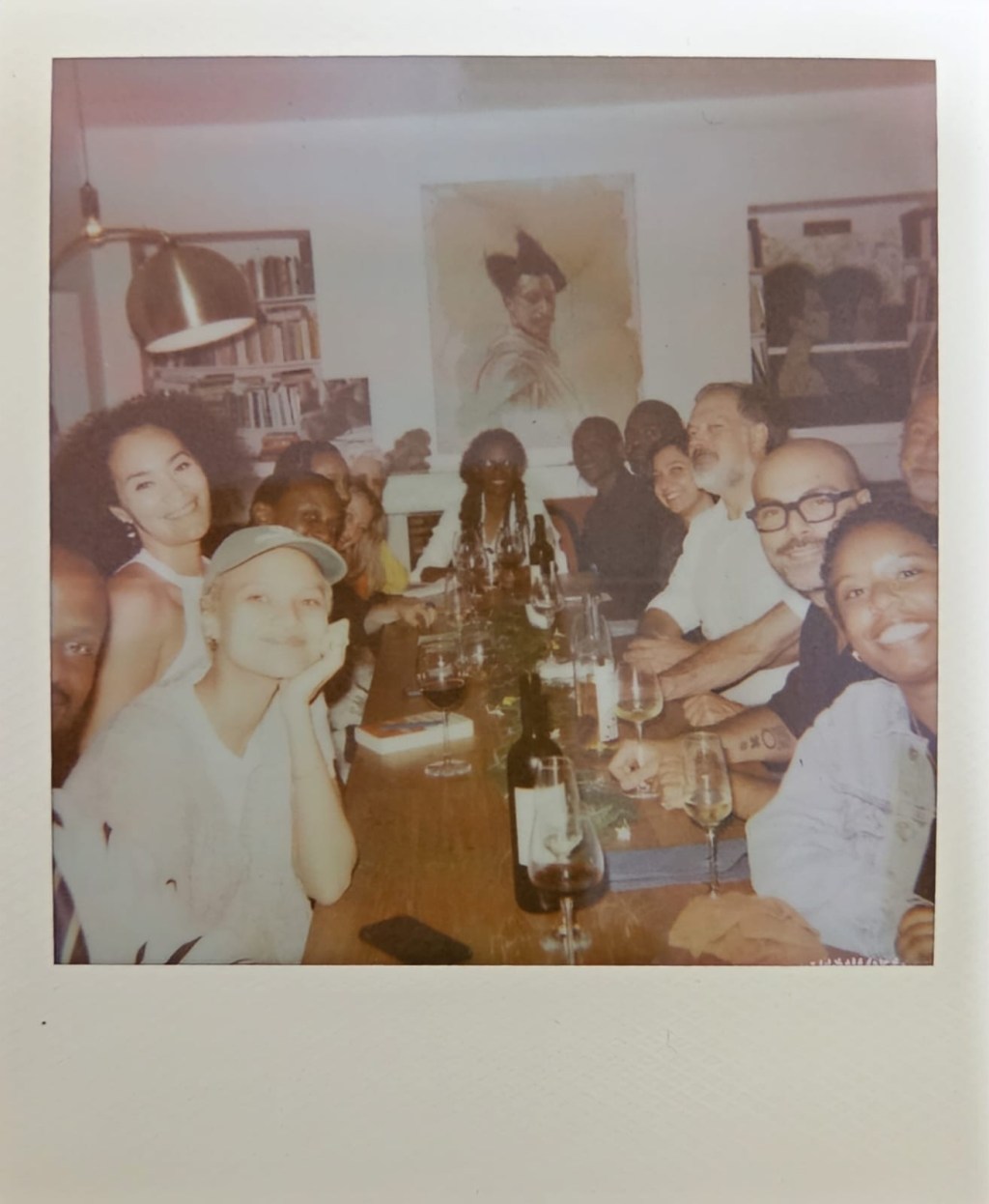 Gahitsi’s home was a soft-toned, warm sanctuary, held by large cactus trees and a plethora of plants. Upon entering, we’re met with an outdoor arrangement of walnut-brown wooden furniture arranged in a gathering circle, with low-hanging lamps. Gahitsi’s home felt like a hug. The art in his home, in conversation with his furniture pieces, tugged at you to get closer, sit, and digest. In this space, my tender friendship with Zeitz MOCAA Curator Beata America began. In Gahitsi’s tropical sanctuary, seated on handmade wooden benches, America and I unpacked our curatorial woes, dreams, and experiences. At this moment, our bond was cemented.